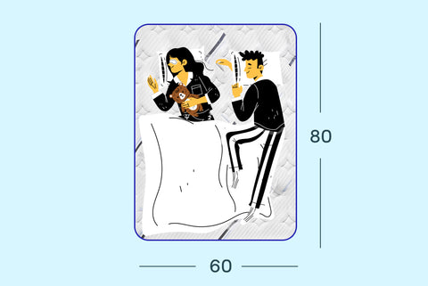 The Queen mattress, the most popular size, measures 60 inches in width and 80 inches in length (152.4 cm x 203.02 cm). Offering the perfect balance of comfort and a compact footprint, it provides ample space for couples or anyone who appreciates extra room to move around.